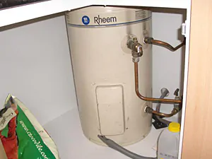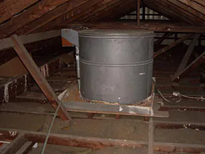 Electrical gravity feed hot water system. The tank is located in the attic.